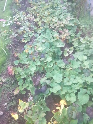 我が家の芋もだいぶ育ってきました。 たまに雑草取りを兼ねて蔓返しをしていますが、芝に接する畝は芝の侵略のために芋があまり育っていないようです。 写真のように下のほうの芋は葉がよく茂っていますが上のほうは元気がない。 あー芝を甘く見ていました。…